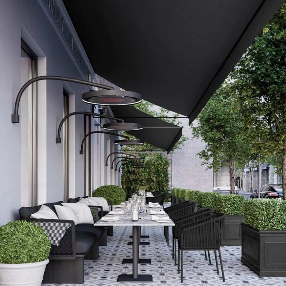 This stylish and ingenious heater offers numerous mounting possibilities, minimal clearance needs, and an adjustable heat output of up to 2900 watts, perfect for chillier days. Its special ceramic screen guarantees an even distribution of heat while reducing the light emanating from the element.