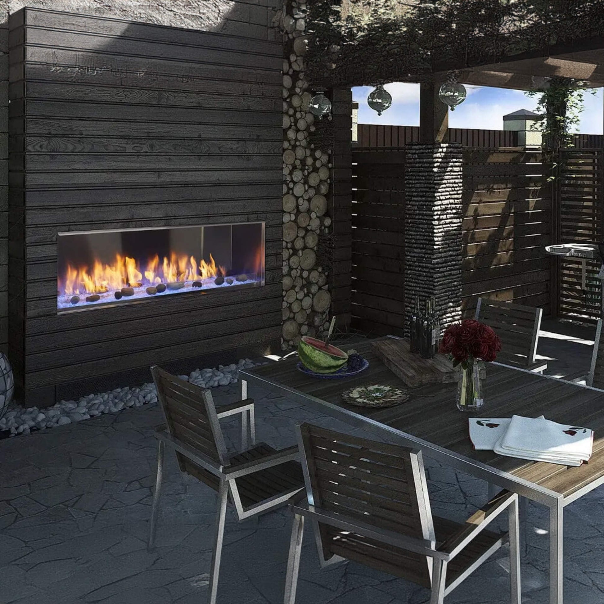 With rust-resistant stainless steel construction and easy-to-use wall mount control, this gas fireplace offers both style and function. Enjoy a captivating fire experience, shielded from the elements by the included glass wind guard.